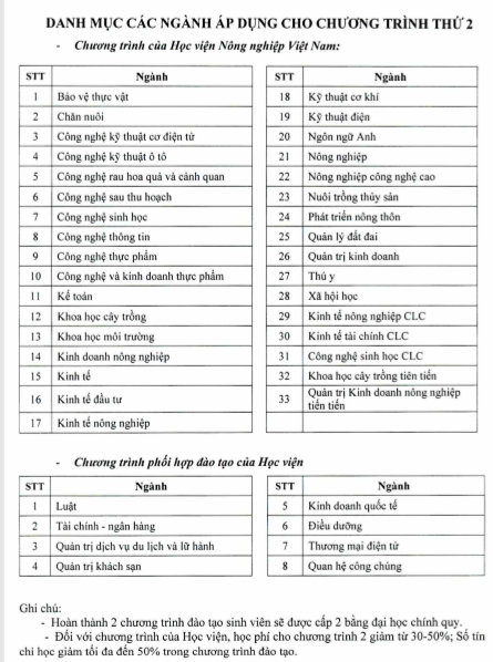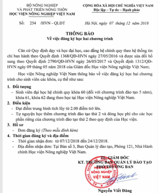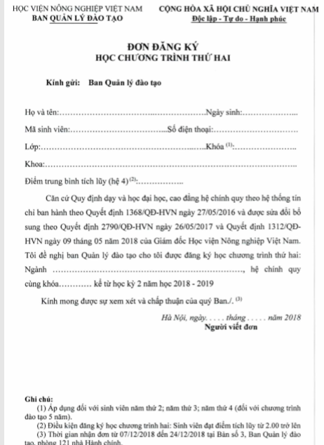 Thông báo về việc đăng ký học hai chương trình