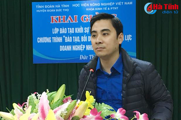 Sáng 17/4, Học viện Nông nghiệp Việt Nam phối hợp với Tỉnh đoàn Hà Tĩnh, Huyện đoàn Đức Thọ tổ chức khai giảng lớp đào tạo khởi sự doanh nghiệp cho 110 học viên là giám đốc các hợp tác xã thanh niên, doanh nghiệp, mô hình kinh tế thanh niên và đoàn viên thanh niên đang ấp ủ ý tưởng khởi nghiệp.