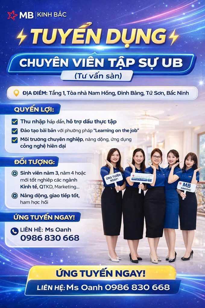 MB Kinh Bắc tuyển dụng vị trí Chuyên viên tập sự UB (chuyen viên tư vấn)cơ hội dành cho các bạn sinh viên muốn vừa học hỏi vừa có thu nhập.